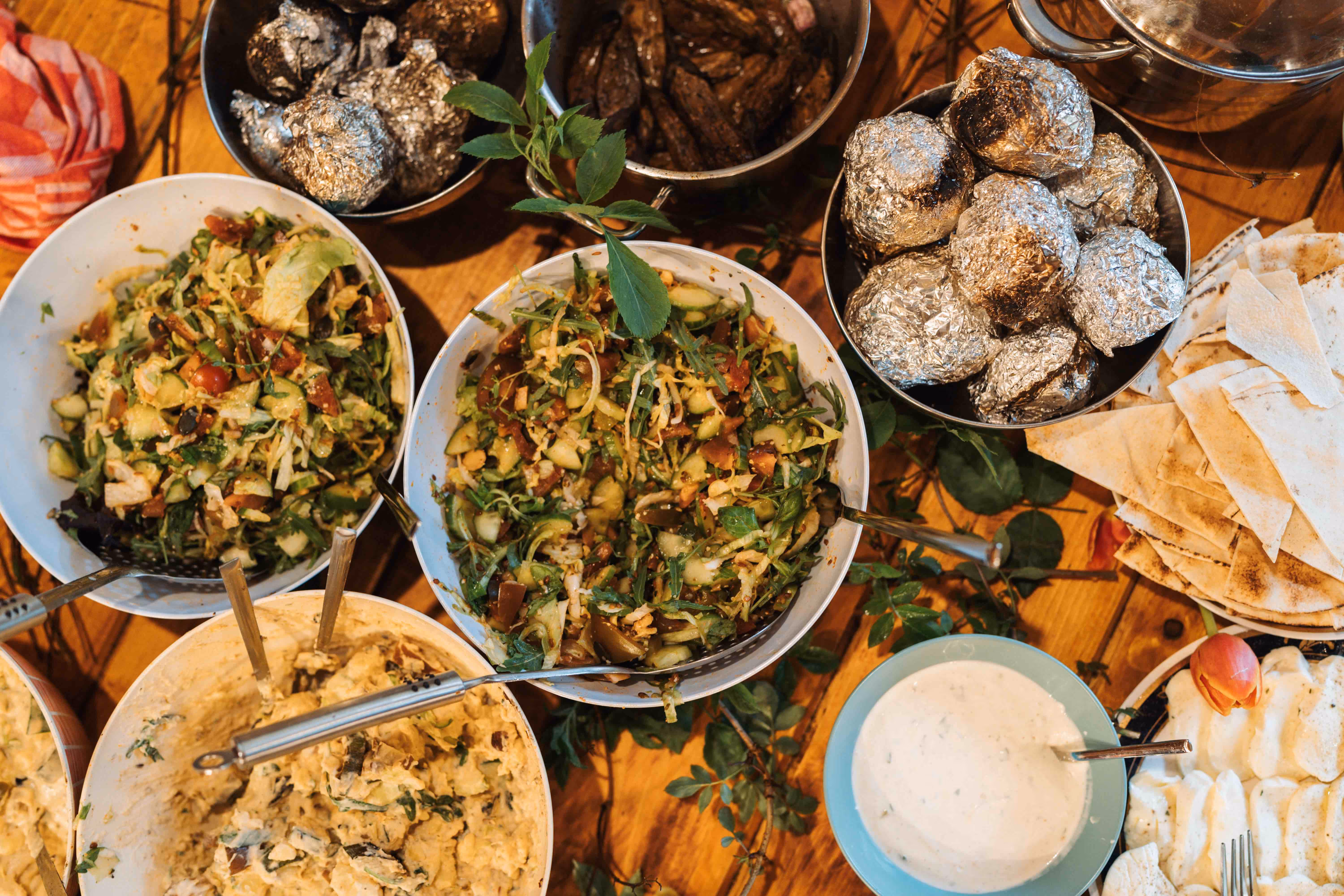 We cook and share our meals together as a community. Most of the time we enjoy nourishing vegetarian dishes, and every now and then meat is also on the table. From breakfast to dinner, food is part of the experience. Bringing us together, grounding us, and adding to the joy of the gathering.