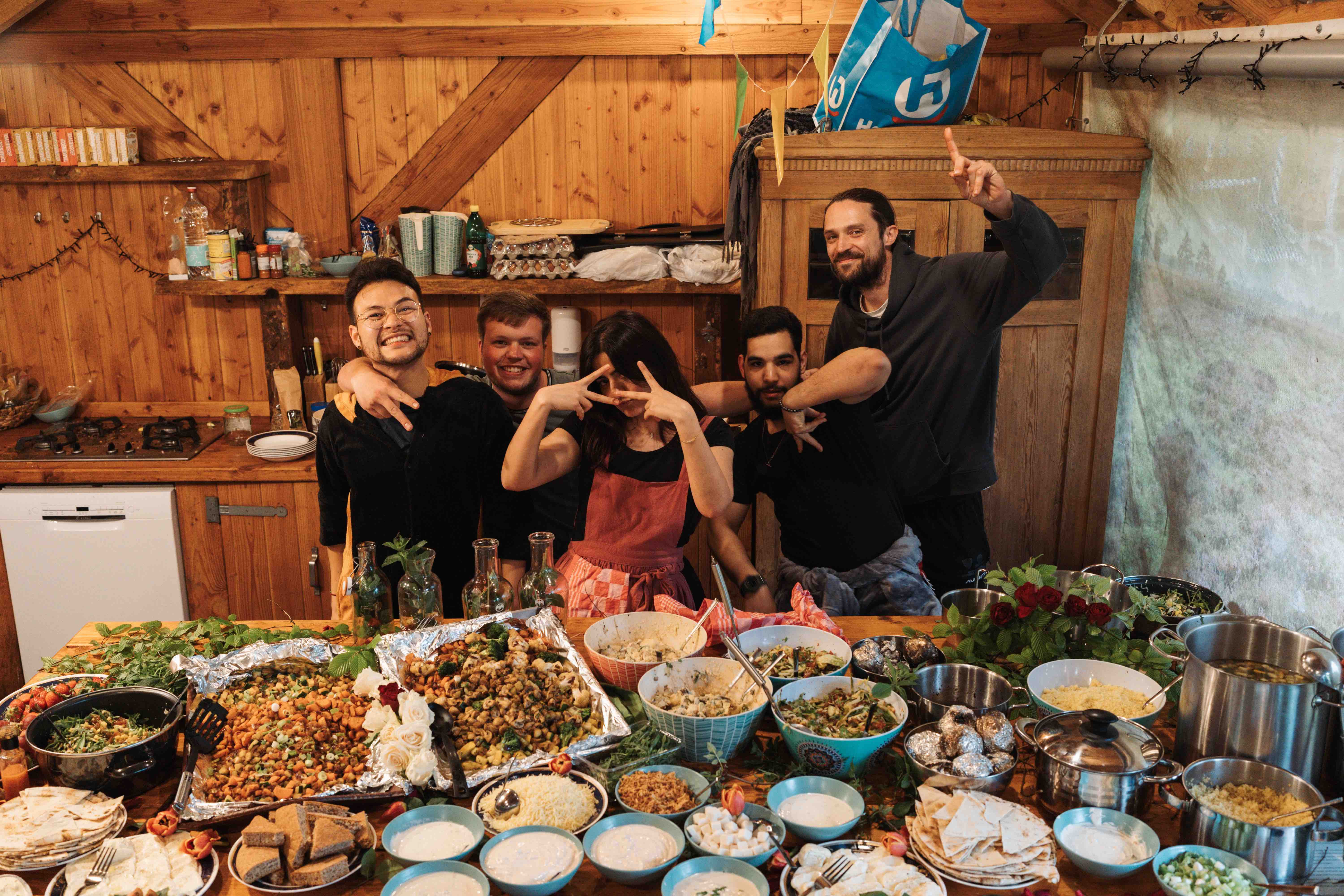 We cook and eat together as a community. Most meals are vegetarian, though sometimes we also serve meat. Breakfast is usually an open buffet.